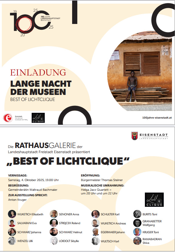 Am Samstag den 4. Oktober 2025 fand im Zuge der „ORF Lange Nacht der Museen“ in der Rathausgalerie in Eisenstadt die Eröffnung der Ausstellung „Best of Lichtclique“ statt, die einen Überblick über die Arbeiten der Fotografinnen und Fotografen der Lichtclique der letzten Jahre zeigt.